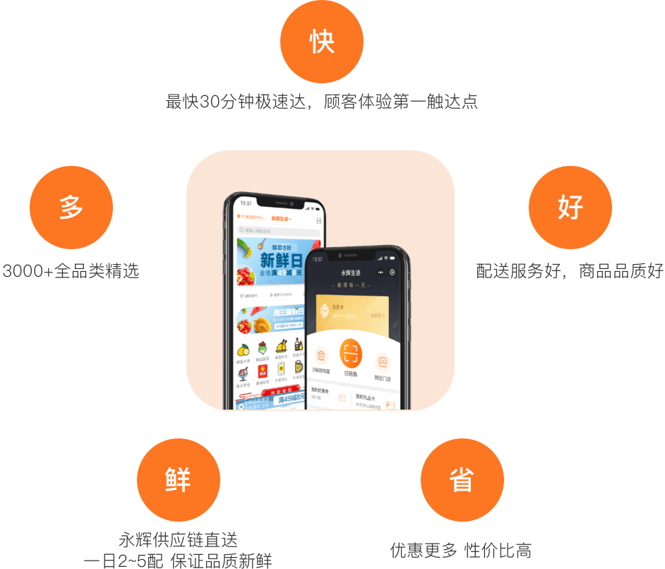 是永輝云創(chuàng)依托全球直采供應(yīng)鏈、智慧零售科技實(shí)力孵化的創(chuàng)新業(yè)態(tài)。通過貼近用戶的衛(wèi)星倉、永輝線上超市小程序/APP線上服務(wù)平臺(tái)、專業(yè)貼心的服務(wù)團(tuán)隊(duì),為周邊3公里用戶提供品質(zhì)生鮮、全球好貨30分鐘配送到家體驗(yàn),滿足用戶新鮮、便捷的生活購物需求。